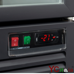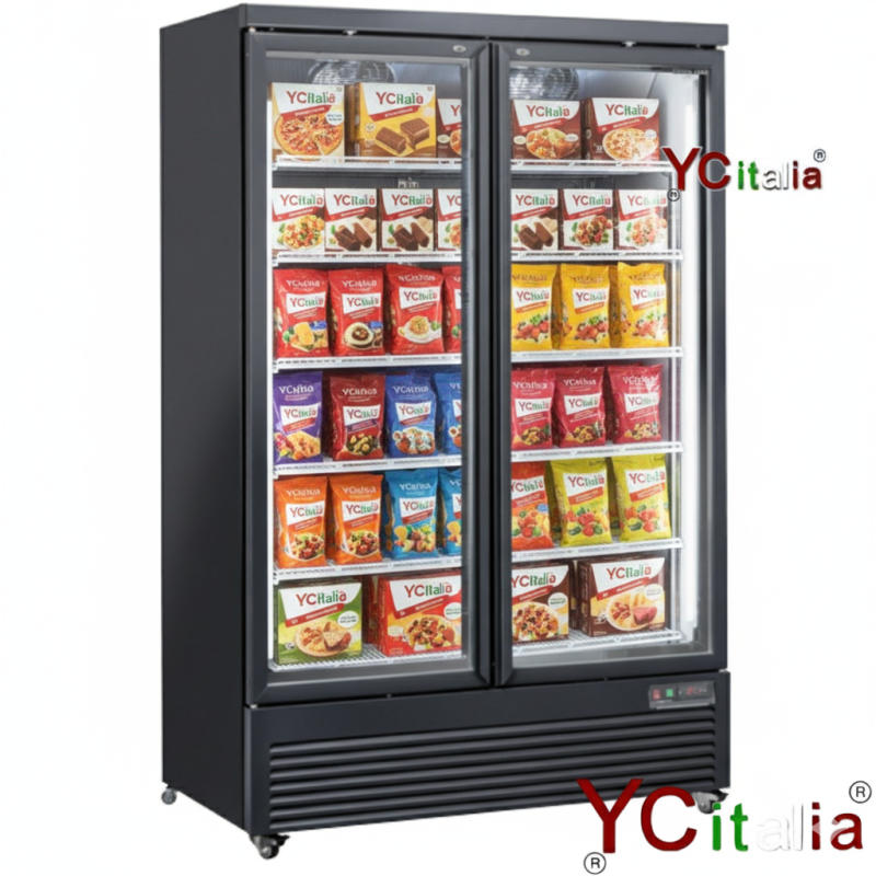 Congelatore 1340x760x2040 mm con corpo in acciaio di colore nero e due porte in vetro. Trasporto gratuito in tutta Italia.