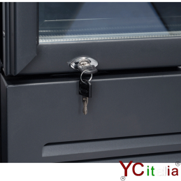 Design: Il corpo è interamente in acciaio verniciato nero, sia all'interno che all'esterno. Le porte sono riscaldate, con triplo vetro di sicurezza temperato e gas Argon, per evitare la formazione di condensa.