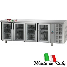 Tavolo refrigerato 4 porte in vetro con temperatura: 0 / +10 °C